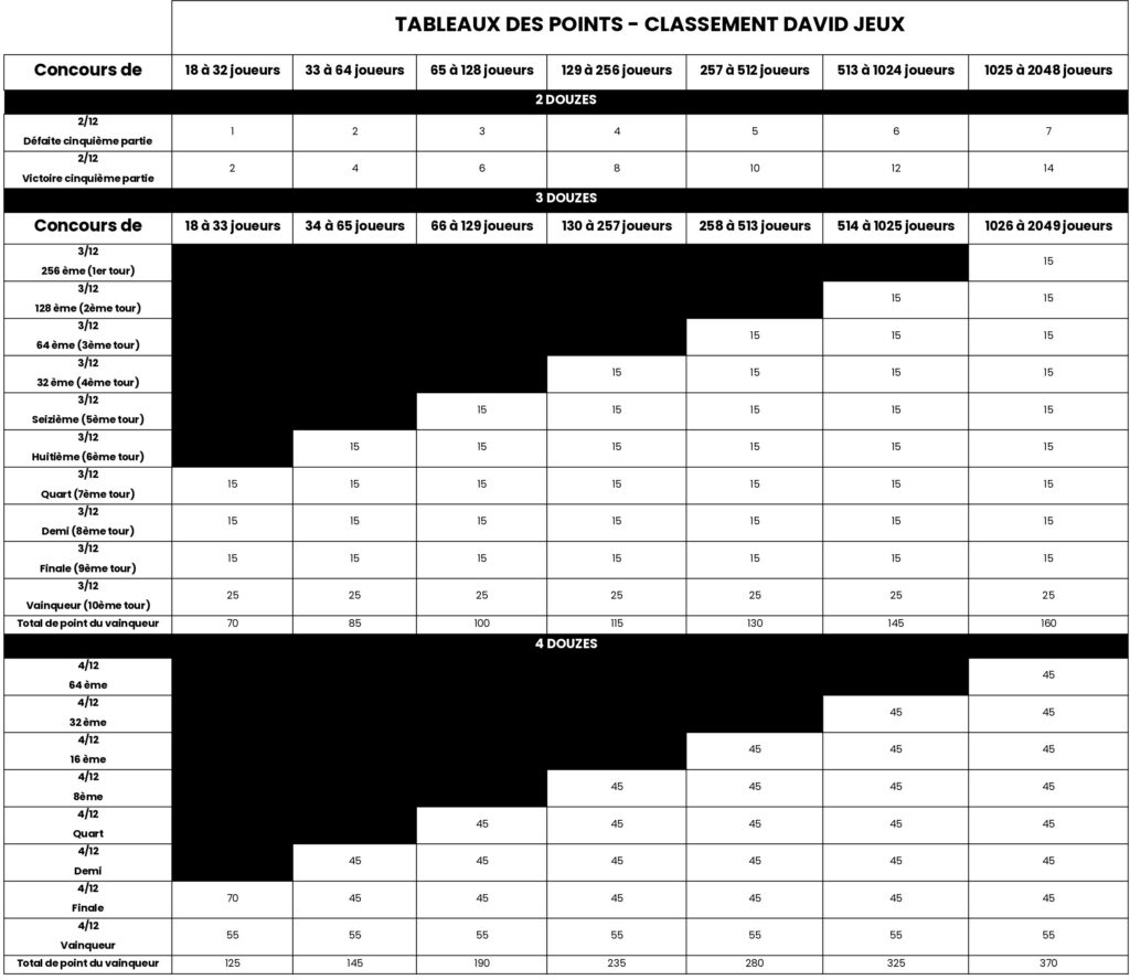 Le classement DAVID Jeux est conçu pour récompenser à la fois la régularité et l’excellence ponctuelle.