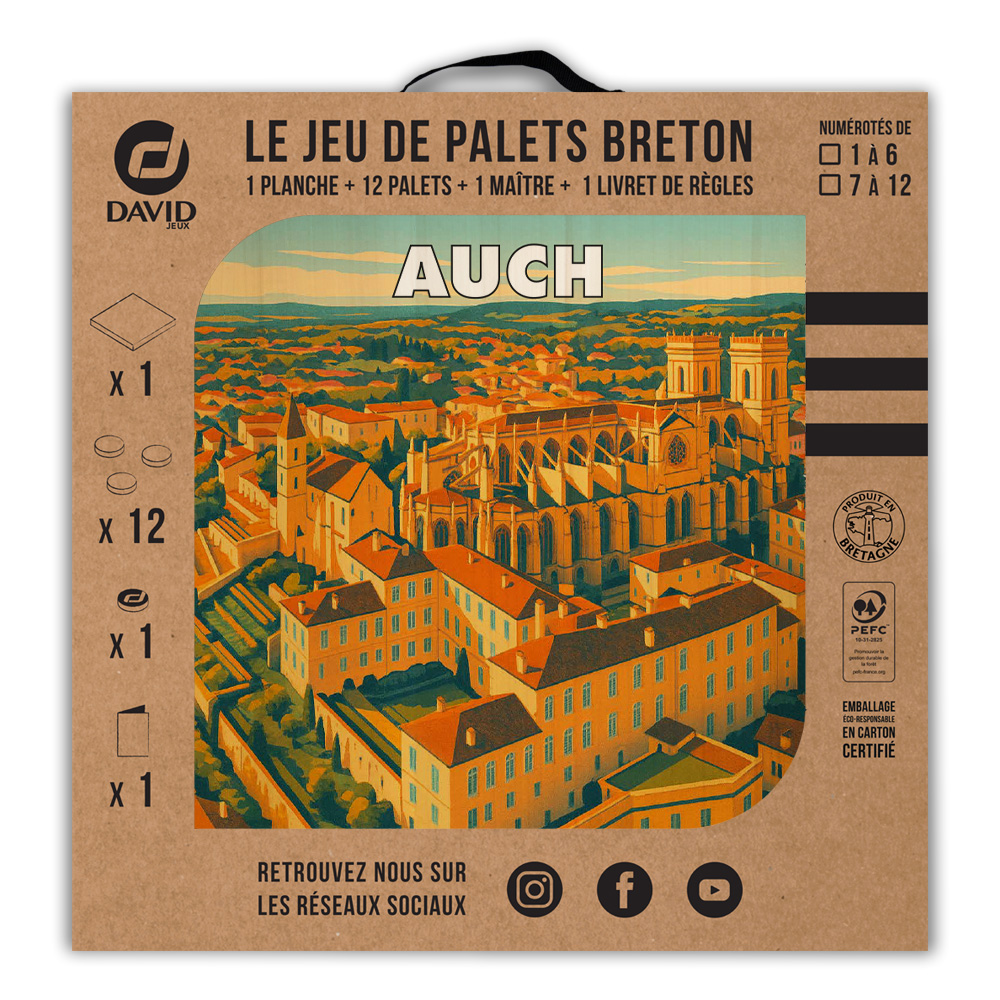 Une planche, 12 palets DAVID (de notre gamme l’Amical Breton), un maître, une règle du jeu et le tour est joué ! Vous voilà équipé pour jouer seul ou en équipe au jeu de palet. Par n’importe quel temps, en intérieur ou en extérieur, sortez votre planche et partagez une activité conviviale en famille ou entre amis. Cette sérigraphie originale est apposée sur une planche en peuplier.   Découvrez les règles du palet breton en vidéo : Les règles du palet breton