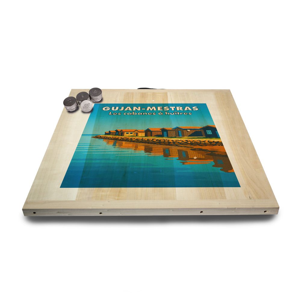 Une planche, 12 palets DAVID (de notre gamme l’Amical Breton), un maître, une règle du jeu et le tour est joué ! Vous voilà équipé pour jouer seul ou en équipe au jeu de palet. Par n’importe quel temps, en intérieur ou en extérieur, sortez votre planche et partagez une activité conviviale en famille ou entre amis. Cette sérigraphie originale est apposée sur une planche en peuplier.   Découvrez les règles du palet breton en vidéo : Les règles du palet breton