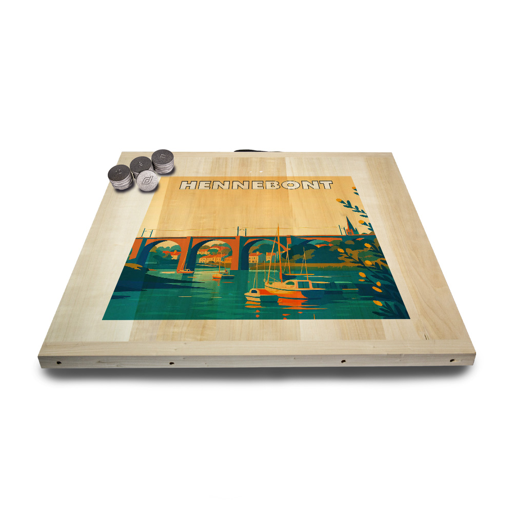 Une planche, 12 palets DAVID (de notre gamme l’Amical Breton), un maître, une règle du jeu et le tour est joué ! Vous voilà équipé pour jouer seul ou en équipe au jeu de palet. Par n’importe quel temps, en intérieur ou en extérieur, sortez votre planche et partagez une activité conviviale en famille ou entre amis. Cette sérigraphie originale est apposée sur une planche en peuplier.   Découvrez les règles du palet breton en vidéo : Les règles du palet breton