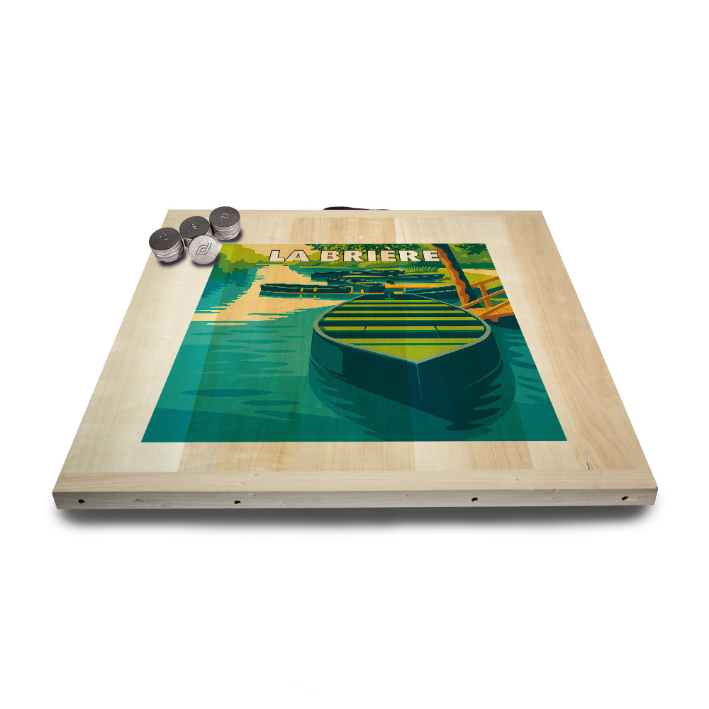 Une planche, 12 palets DAVID (de notre gamme l’Amical Breton), un maître, une règle du jeu et le tour est joué ! Vous voilà équipé pour jouer seul ou en équipe au jeu de palet. Par n’importe quel temps, en intérieur ou en extérieur, sortez votre planche et partagez une activité conviviale en famille ou entre amis. Cette sérigraphie originale est apposée sur une planche en peuplier.   Découvrez les règles du palet breton en vidéo : Les règles du palet breton