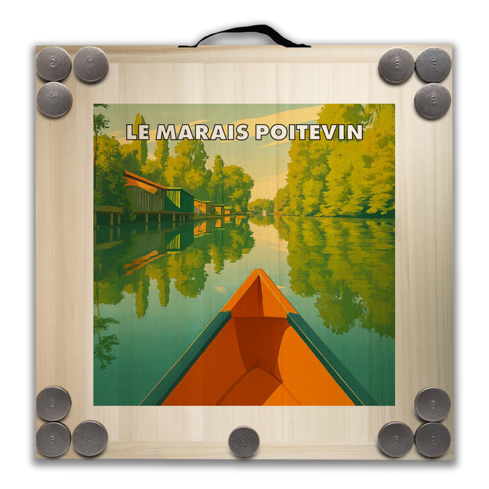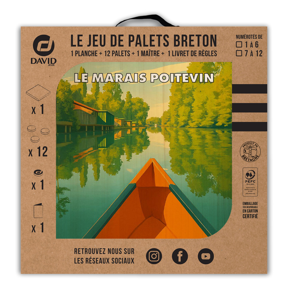 Une planche, 12 palets DAVID (de notre gamme l’Amical Breton), un maître, une règle du jeu et le tour est joué ! Vous voilà équipé pour jouer seul ou en équipe au jeu de palet. Par n’importe quel temps, en intérieur ou en extérieur, sortez votre planche et partagez une activité conviviale en famille ou entre amis. Cette sérigraphie originale est apposée sur une planche en peuplier.   Découvrez les règles du palet breton en vidéo : Les règles du palet breton