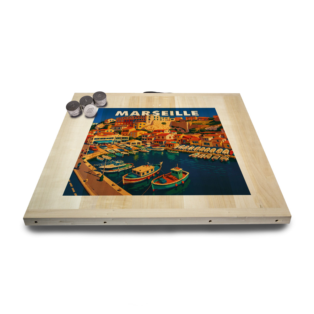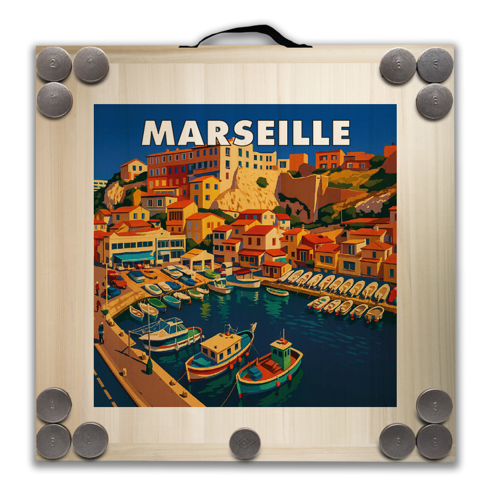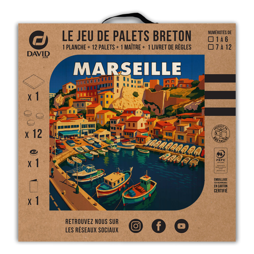 Une planche, 12 palets DAVID (de notre gamme l’Amical Breton), un maître, une règle du jeu et le tour est joué ! Vous voilà équipé pour jouer seul ou en équipe au jeu de palet. Par n’importe quel temps, en intérieur ou en extérieur, sortez votre planche et partagez une activité conviviale en famille ou entre amis. Cette sérigraphie originale est apposée sur une planche en peuplier.   Découvrez les règles du palet breton en vidéo : Les règles du palet breton