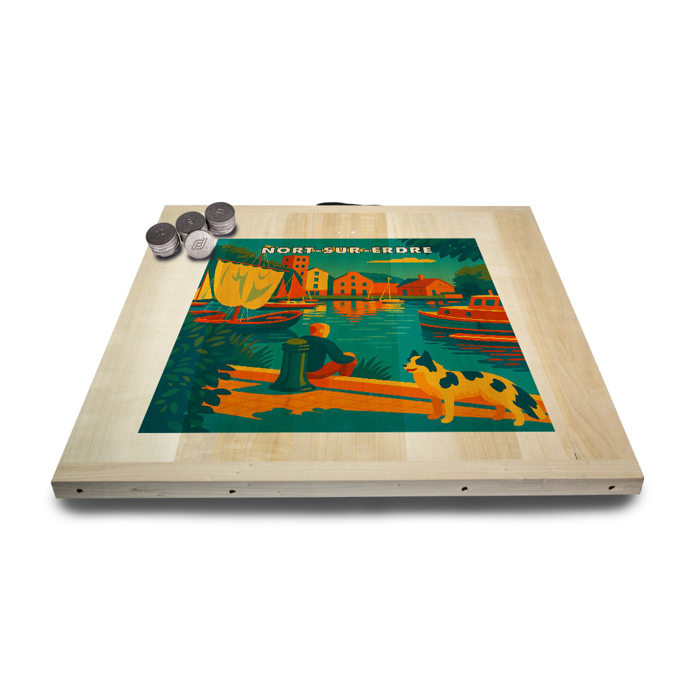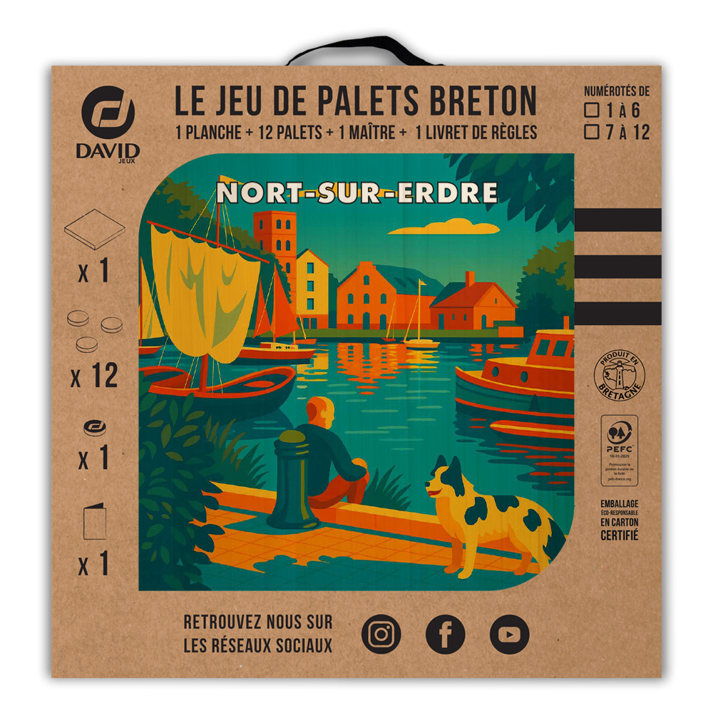 Une planche, 12 palets DAVID (de notre gamme l’Amical Breton), un maître, une règle du jeu et le tour est joué ! Vous voilà équipé pour jouer seul ou en équipe au jeu de palet. Par n’importe quel temps, en intérieur ou en extérieur, sortez votre planche et partagez une activité conviviale en famille ou entre amis. Cette sérigraphie originale est apposée sur une planche en peuplier.   Découvrez les règles du palet breton en vidéo : Les règles du palet breton