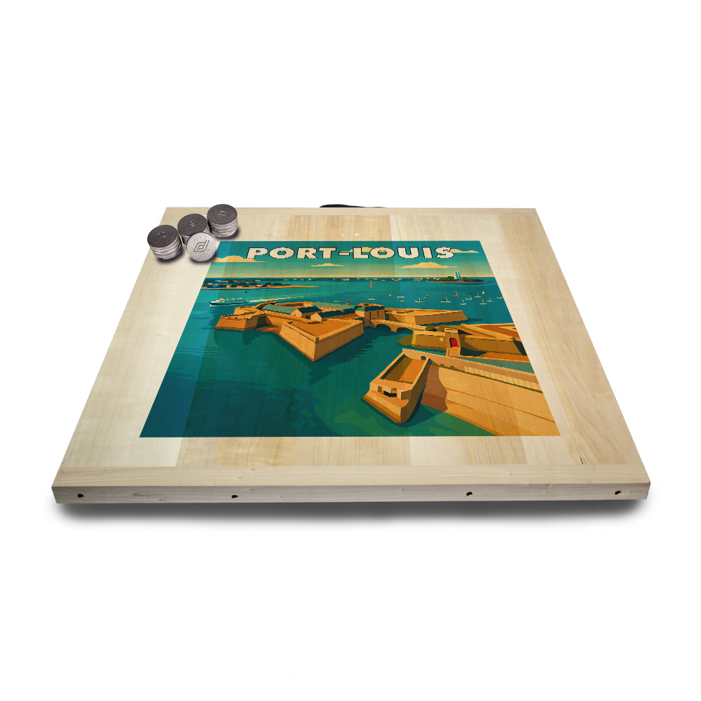 Une planche, 12 palets DAVID (de notre gamme l’Amical Breton), un maître, une règle du jeu et le tour est joué ! Vous voilà équipé pour jouer seul ou en équipe au jeu de palet. Par n’importe quel temps, en intérieur ou en extérieur, sortez votre planche et partagez une activité conviviale en famille ou entre amis. Cette sérigraphie originale est apposée sur une planche en peuplier.   Découvrez les règles du palet breton en vidéo : Les règles du palet breton