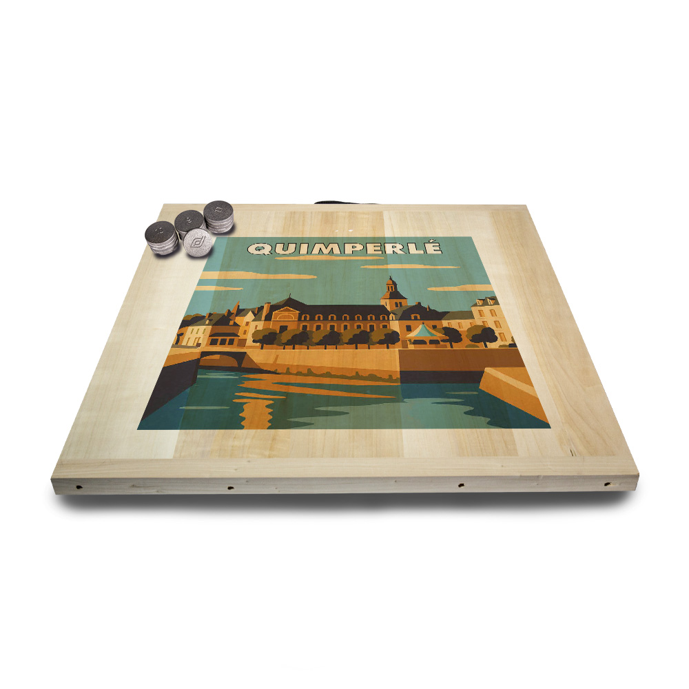 Une planche, 12 palets DAVID (de notre gamme l’Amical Breton), un maître, une règle du jeu et le tour est joué ! Vous voilà équipé pour jouer seul ou en équipe au jeu de palet. Par n’importe quel temps, en intérieur ou en extérieur, sortez votre planche et partagez une activité conviviale en famille ou entre amis. Cette sérigraphie originale est apposée sur une planche en peuplier.   Découvrez les règles du palet breton en vidéo : Les règles du palet breton