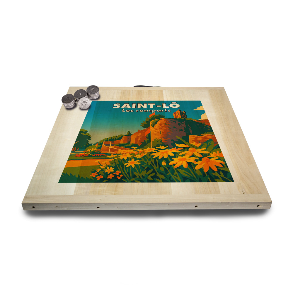 Une planche, 12 palets DAVID (de notre gamme l’Amical Breton), un maître, une règle du jeu et le tour est joué ! Vous voilà équipé pour jouer seul ou en équipe au jeu de palet. Par n’importe quel temps, en intérieur ou en extérieur, sortez votre planche et partagez une activité conviviale en famille ou entre amis. Cette sérigraphie originale est apposée sur une planche en peuplier.   Découvrez les règles du palet breton en vidéo : Les règles du palet breton