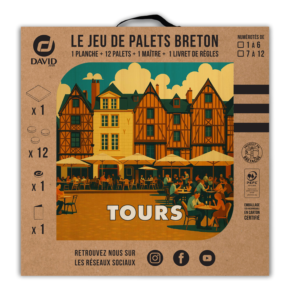 Une planche, 12 palets DAVID (de notre gamme l’Amical Breton), un maître, une règle du jeu et le tour est joué ! Vous voilà équipé pour jouer seul ou en équipe au jeu de palet. Par n’importe quel temps, en intérieur ou en extérieur, sortez votre planche et partagez une activité conviviale en famille ou entre amis. Cette sérigraphie originale est apposée sur une planche en peuplier.   Découvrez les règles du palet breton en vidéo : Les règles du palet breton
