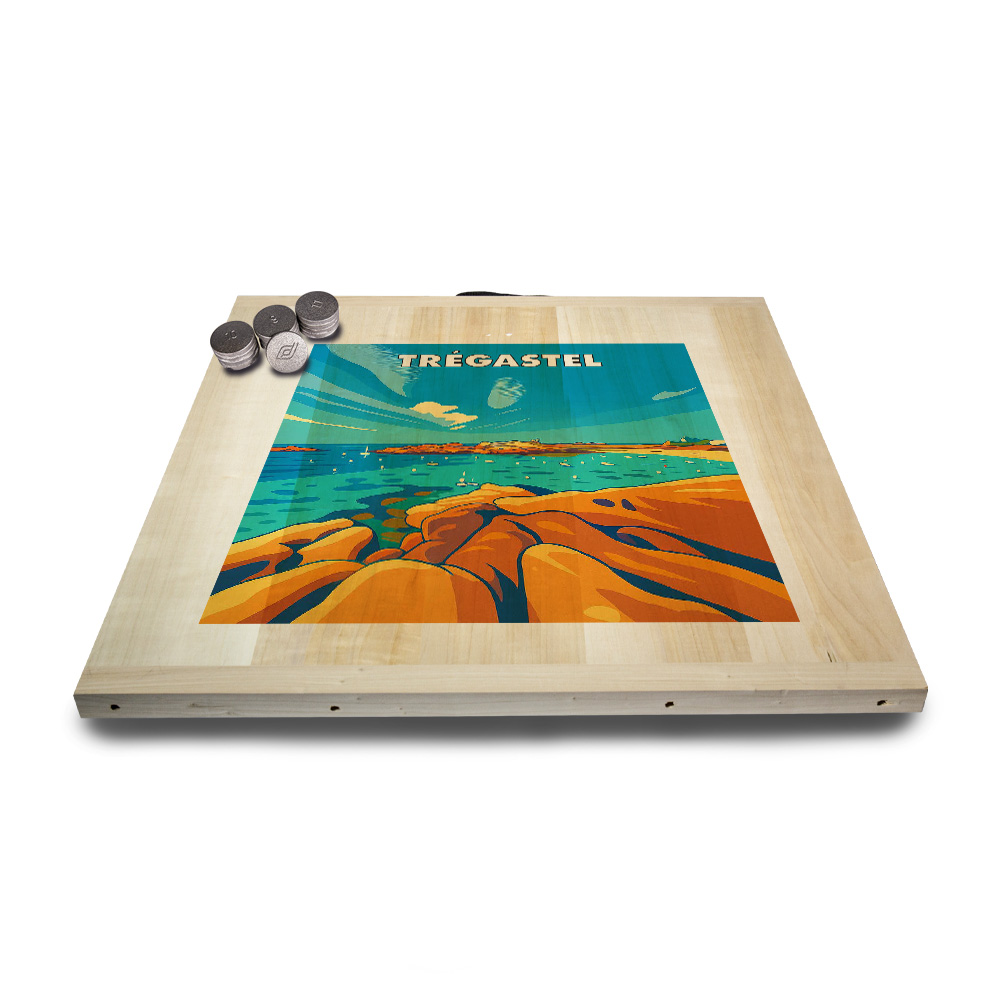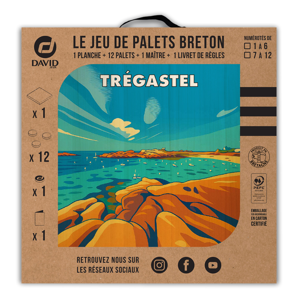 Une planche, 12 palets DAVID (de notre gamme l’Amical Breton), un maître, une règle du jeu et le tour est joué ! Vous voilà équipé pour jouer seul ou en équipe au jeu de palet. Par n’importe quel temps, en intérieur ou en extérieur, sortez votre planche et partagez une activité conviviale en famille ou entre amis. Cette sérigraphie originale est apposée sur une planche en peuplier.   Découvrez les règles du palet breton en vidéo : Les règles du palet breton