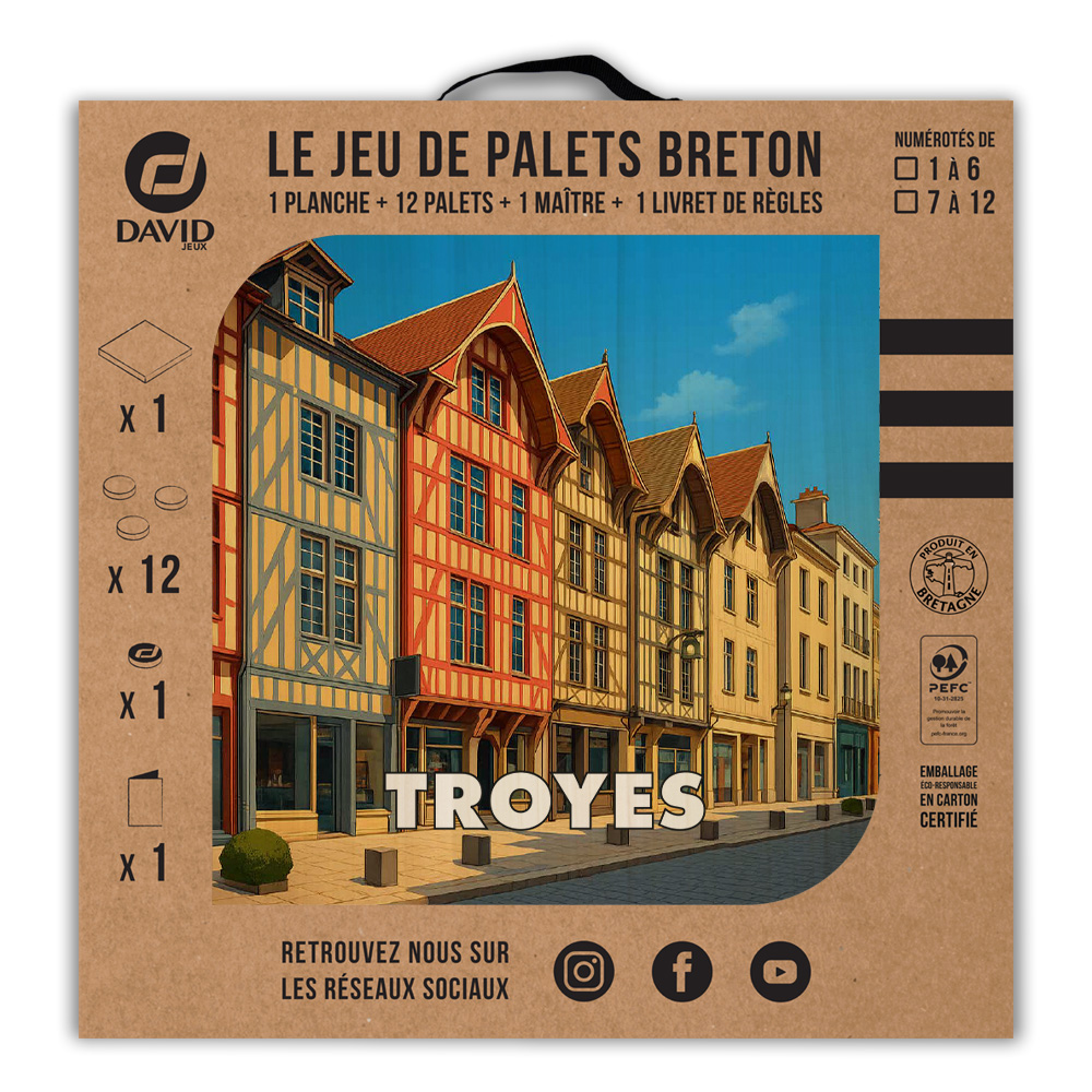 Une planche, 12 palets DAVID (de notre gamme l’Amical Breton), un maître, une règle du jeu et le tour est joué ! Vous voilà équipé pour jouer seul ou en équipe au jeu de palet. Par n’importe quel temps, en intérieur ou en extérieur, sortez votre planche et partagez une activité conviviale en famille ou entre amis. Cette sérigraphie originale est apposée sur une planche en peuplier.   Découvrez les règles du palet breton en vidéo : Les règles du palet breton