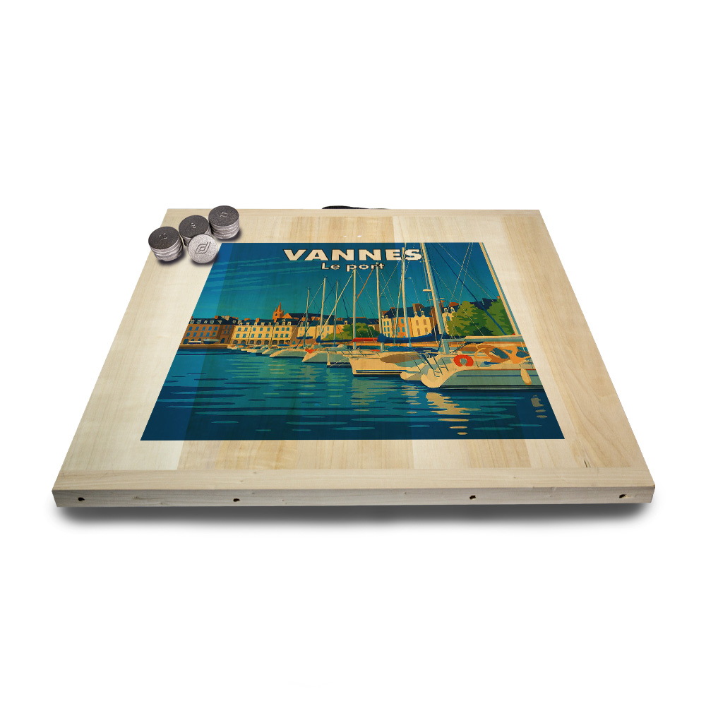 Une planche, 12 palets DAVID (de notre gamme l’Amical Breton), un maître, une règle du jeu et le tour est joué ! Vous voilà équipé pour jouer seul ou en équipe au jeu de palet. Par n’importe quel temps, en intérieur ou en extérieur, sortez votre planche et partagez une activité conviviale en famille ou entre amis. Cette sérigraphie originale est apposée sur une planche en peuplier.   Découvrez les règles du palet breton en vidéo : Les règles du palet breton